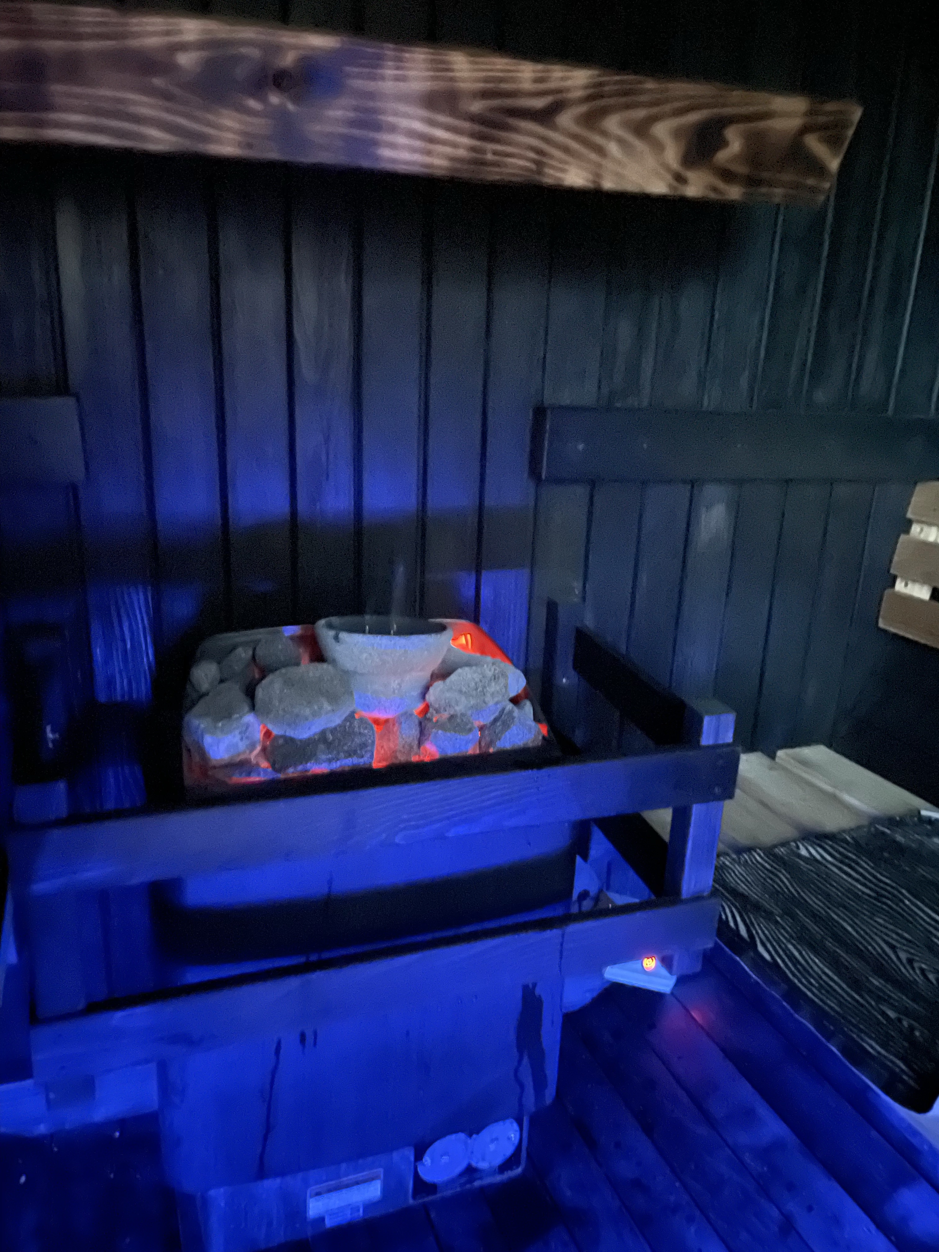 Just because everything works a bit differently in barrel sauna when it comes to steam, I wanted to try something I had in Finland a long time ago: a sauna fountain. The literal Finnish translation is “sauna genie” (think Alladin) but it seems that the international translation goes “Sauna Maestro”. Sauna genie would have been much better.