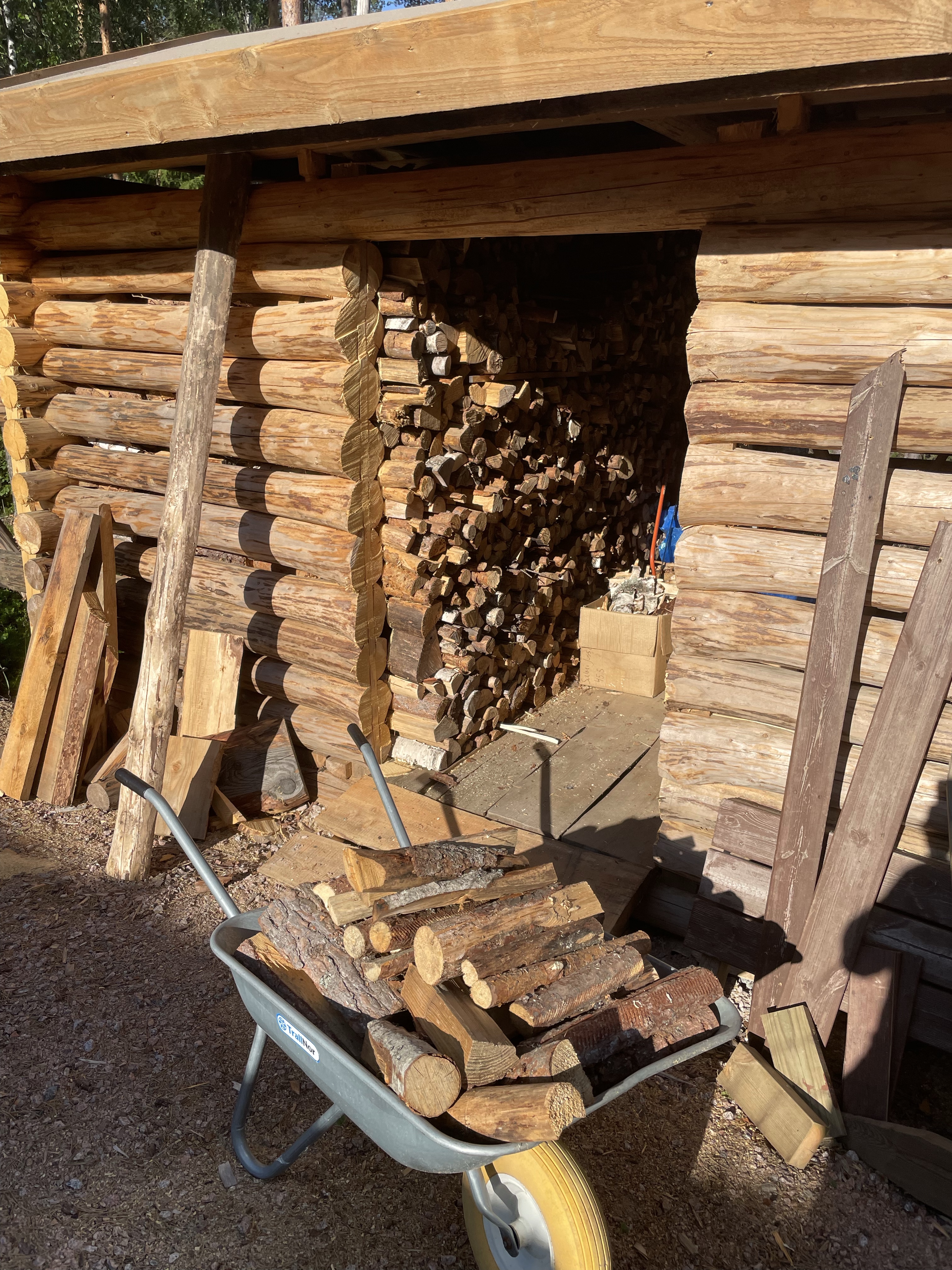 Chopping firewood is one of the popular chores at a summer place. There’s always something to do: harvesting the forest, cutting logs, chopping firewood, drying it, you name it. There are many uses for this firewood. You typically use birch for heating a fireplace because it provides more energy and doesn’t have resin (doesn’t crackle). Pine and spruce can be burned as well and they make great sauna firewood for summer when you don’t necessarily need all that heating energy. Then you obviously cook on fire or make lumberjack’s candles (often translated as Swedish torch, what a shame) or nying (rakovalkea in Finnish).