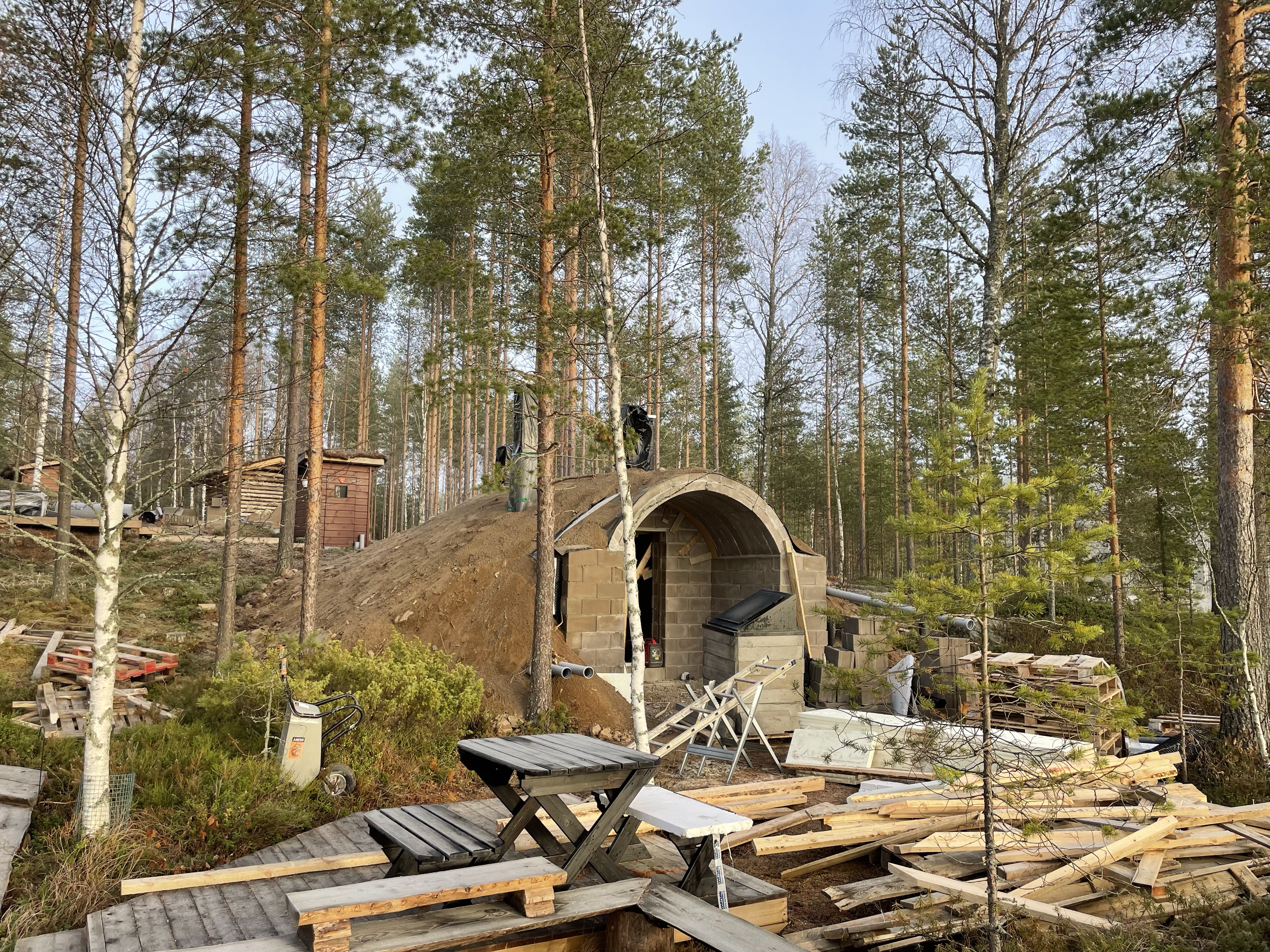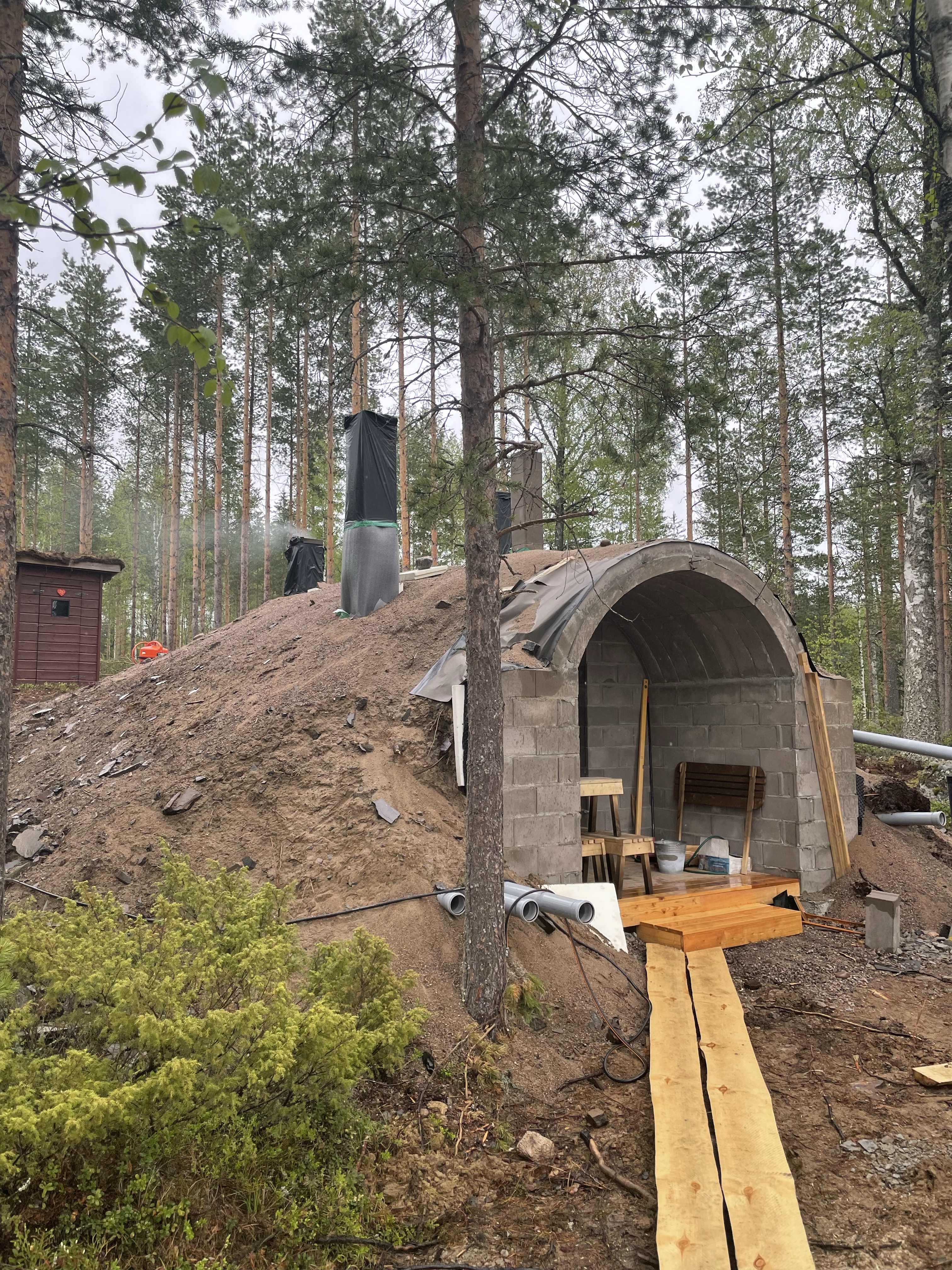 My brother and his wife heard about this sauna concept a few years ago: a vault-shaped underground smoke sauna made of cylinder blocks.