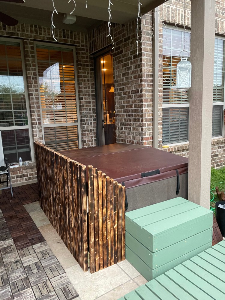 The authentic Finnish palju is often a barrel-shaped and made of wood and it is heated up with a wood-fired oven. Since, I couldn’t add anything like that on my backyard, I just went with a regular hot tub. I didn’t particularly like the grey vinyl casing of my hot tub so I went ahead and made a wooden fence around it. It works better for my feng shui when I see that wooden fence from my sauna instead of some cheap plastic.